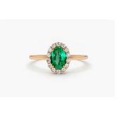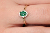 Anel De Noivado em Ouro 18k Solitario Esmeralda e Diamantes Brilhantes